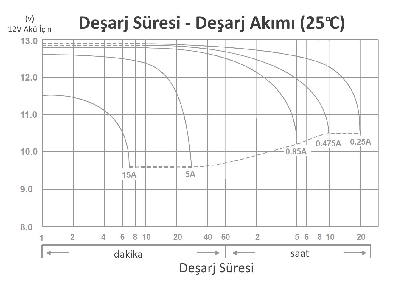 Zaman/F.V | 1,85V | 1,80V | 1,75 V | 1,70V | 1,67V | 1,65V | 1,60V |